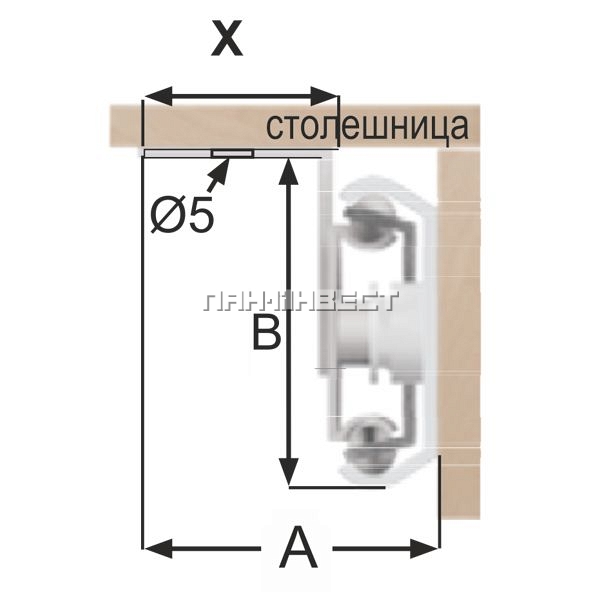 ширина крепления к крышке стола